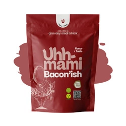 przypraw, które doskonale odzwierciedlają smaki niewegańskie – bekon, ser i niebieski ser. Są nimi: Bacon’ish,