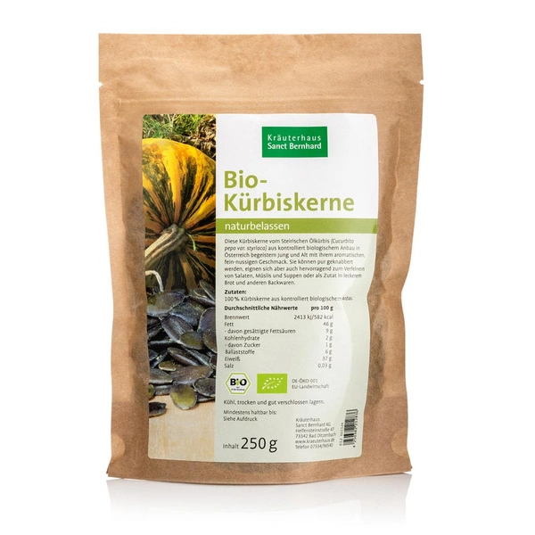 - Łuskane pestki dyni oleistej odmiany styryjskiej (Cucurbita pepo var. styriaca), uprawianej ekologicznie w Austrii.